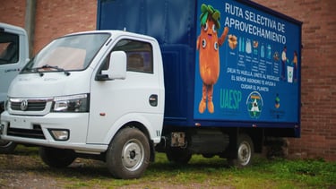 El vehículo tipo furgón es de la marca DONGFENG, con carrocería CHASIS en color blanco, plenamente identificado con la respectiva marcación institucional. Este automotor nos permitirá ampliar la capacidad de transporte de materiales aprovechables, mejorar la eficiencia en las rutas selectivas y garantizar una logística más ordenada, segura y confiable en la prestación del servicio.