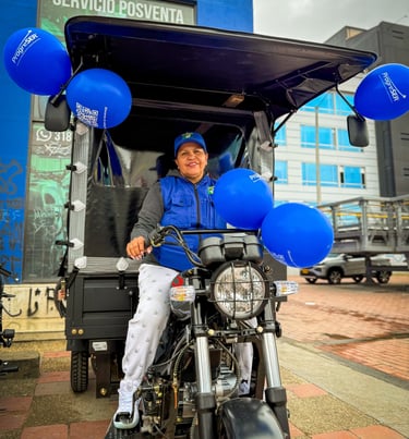 Por su parte, el motocarguero, marca AKT y de color gris, se integra como un recurso ágil y versátil para la recolección en zonas de difícil acceso o con menor volumen de material. Este vehículo permitirá optimizar tiempos, facilitar la cobertura en diferentes sectores y complementar de manera estratégica el trabajo desarrollado con el vehículo furgón.